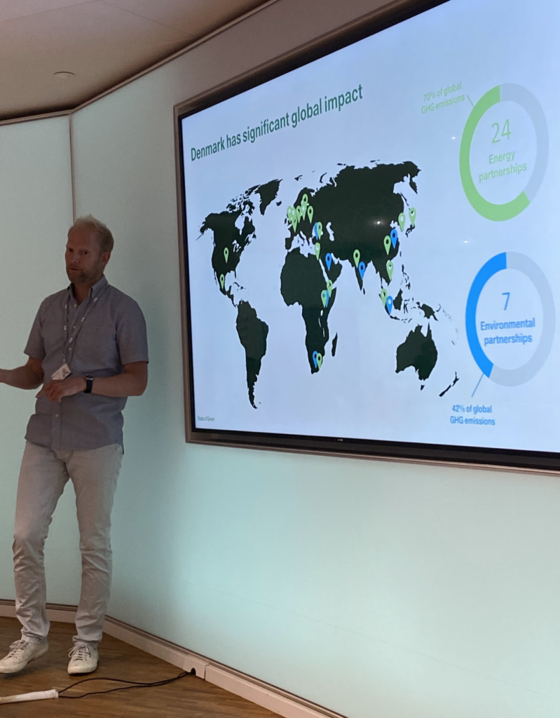 Después de este evento tuvimos la oportunidad de conocer con el equipo de Next Generation City Action y todos los participantes del programa la ciudad de Copenhagen en donde visitamos el ayuntamiento de la ciudad, un edificio característico de la arquitectura danesa de estilo romántico construido en 1905, luego visitamos State of Green, una institución creada por el Gobierno de Dinamarca que tiene como objetivo trabajar en el fortalecimiento internacional para desarrollar conciencia de las soluciones y competencias de la industria danesa relacionada a agua, energía, cambio climático y medio ambiente. Allí nos recibió Ulrik Raabjerg Sondergaard (Head of Insights) quien nos hablo de los temas que viene liderando Dinamarca en sostenibilidad a nivel mundial y sus logros (Energía eólica, el 90% de los daneses utilizan la bicicleta como medio de transporte, 9 de cada 10 botellas y latas son devueltas para reciclaje, el primer país en el mundo en establecer un ministerio de ambiente en la década de 1970, su objetivo de descarbonizar sus industrias y ser libre de combustibles fosiles para el 2060).