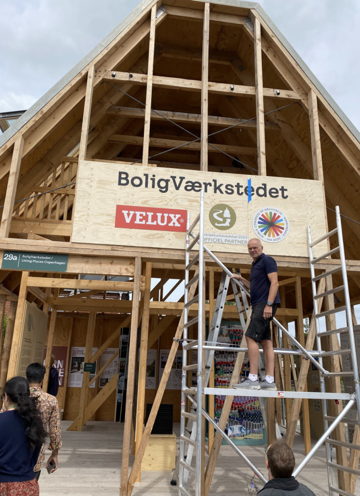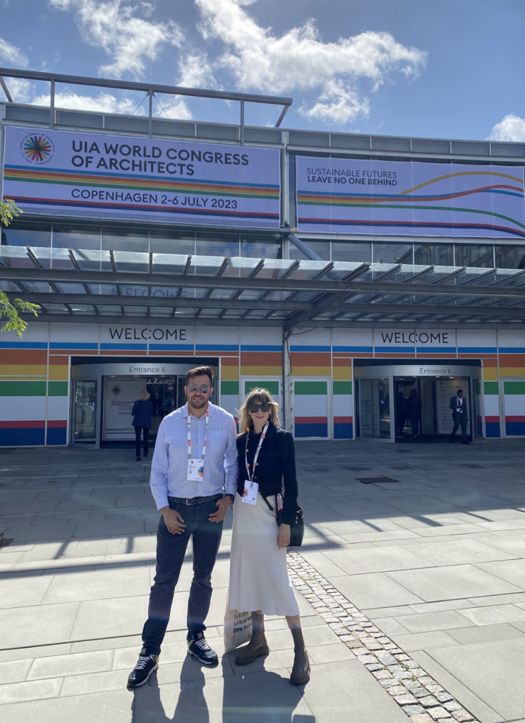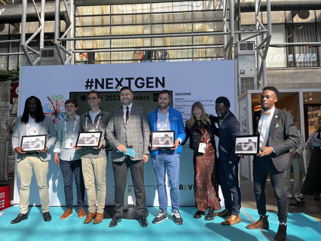 La siguiente fase de Next Generation City Action consitio en viajar a Copenhagen – Dinamarca entre el 28 de junio al 7 de junio con el objetivo principal de participar en el Congreso Internacional de Arquitectos, organizado por la UIA cada tres años y que en este 2023 Copenhagen fue la ciudad afitriona entre el 2 al 6 de julio. Para este evento DTU realizó una alianza con UIA y desarrollaron en conjunto el stand NEXTGEN en donde se mostrarían los proyectos y las startups seleccionadas por DTU ante un aforo de 6000 personas….que asistieron a este evento en donde se encontraban arquitectos, profesionales y empresarios del sector de la construcción a nivel mundial. El objetivo del stand NEXTGEN es mostrar a todos los asistentes las soluciones desarrolladas por los estudiantes y jóvenes empresarios de los países anteriormente mencionados que pueden hacer un mundo mas sostenible en especial en el ámbito de la construcción.