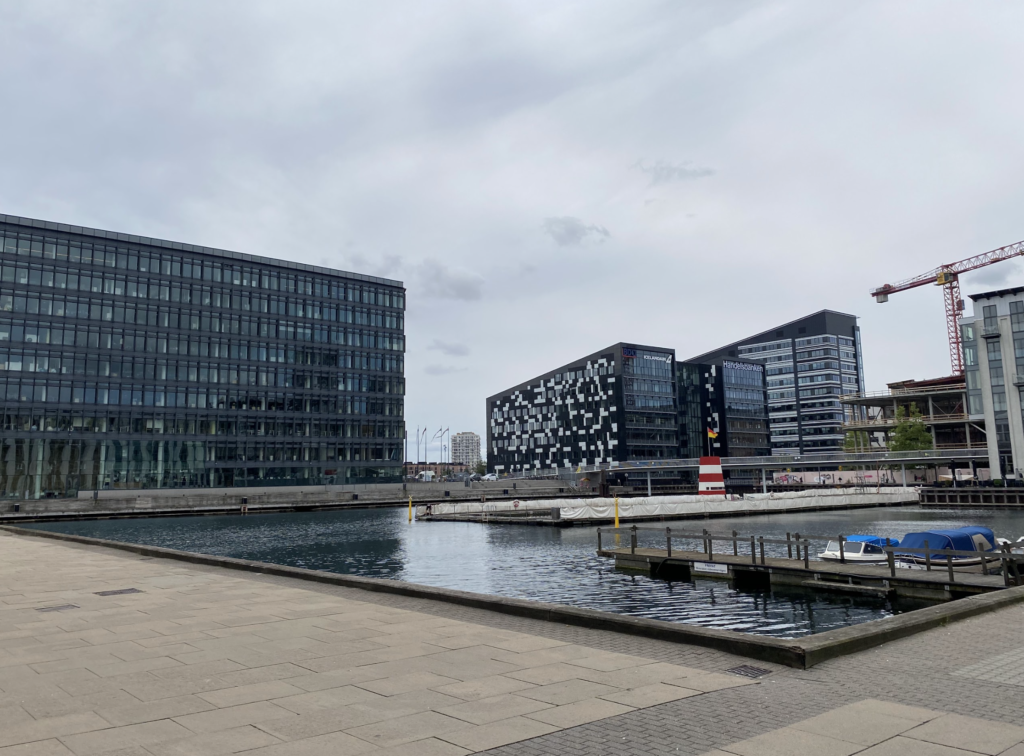 Luego de esta visita caminamos por el casco histórico de Copenhagen disfrutando ver de sus edificios históricos, sus calles limpias, sus habitantes movilizándose en bicicleta, en donde los conductores le dan el paso al peatón combinado de un viento recio pero fresco de verano, típico de los países nórdicos hasta llegar a uno de los canales de Copenhagen, exactamente donde está ubicado la DAC (Danish Architecture Center). De ahí partimos a tener una placida caminata al lado de los canales de Copenhagen disfrutando de su arquitectura moderna y llamativa hasta llegar a un complejo de viviendas sostenibles que está construyendo la empresa danesa VELUX, especializada en la construcción de calaraboyas y tragaluces.