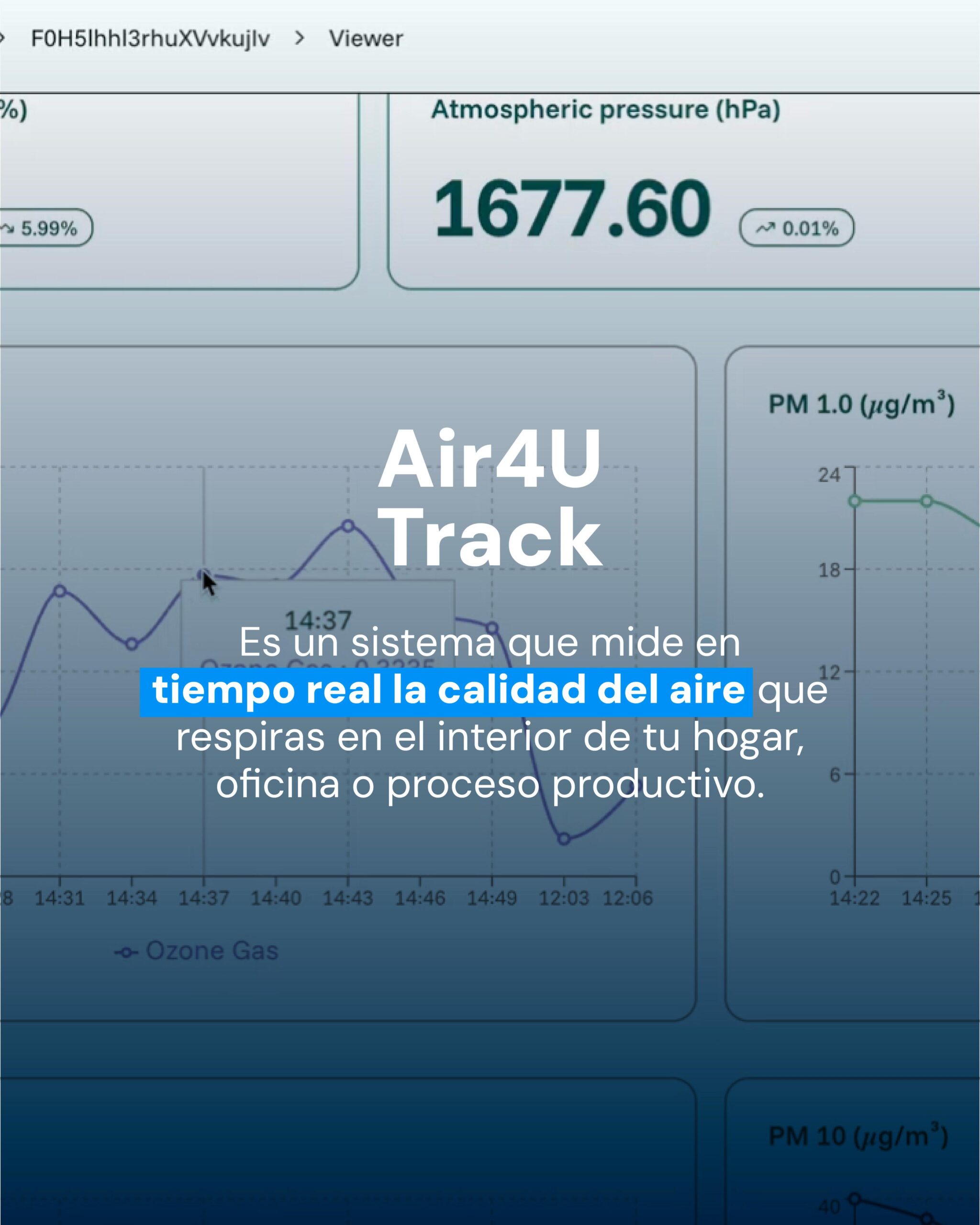 Adicional a la pantalla, puedes acceder a un dashboard por medio de la web en donde podrás conocer en tiempo real los datos relacionados con las cantidades de generación de ozono, material particulado y condiciones ambientales: